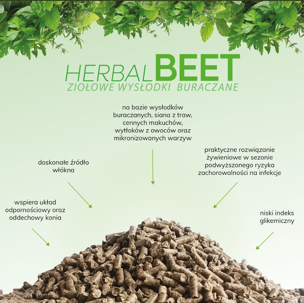 Jednocześnie Herbal Beet dostarcza wolno uwalnianej energii oraz dba o procesy trawienne dzięki dostarczeniu cennego włókna i nawodnieniu organizmu konia.